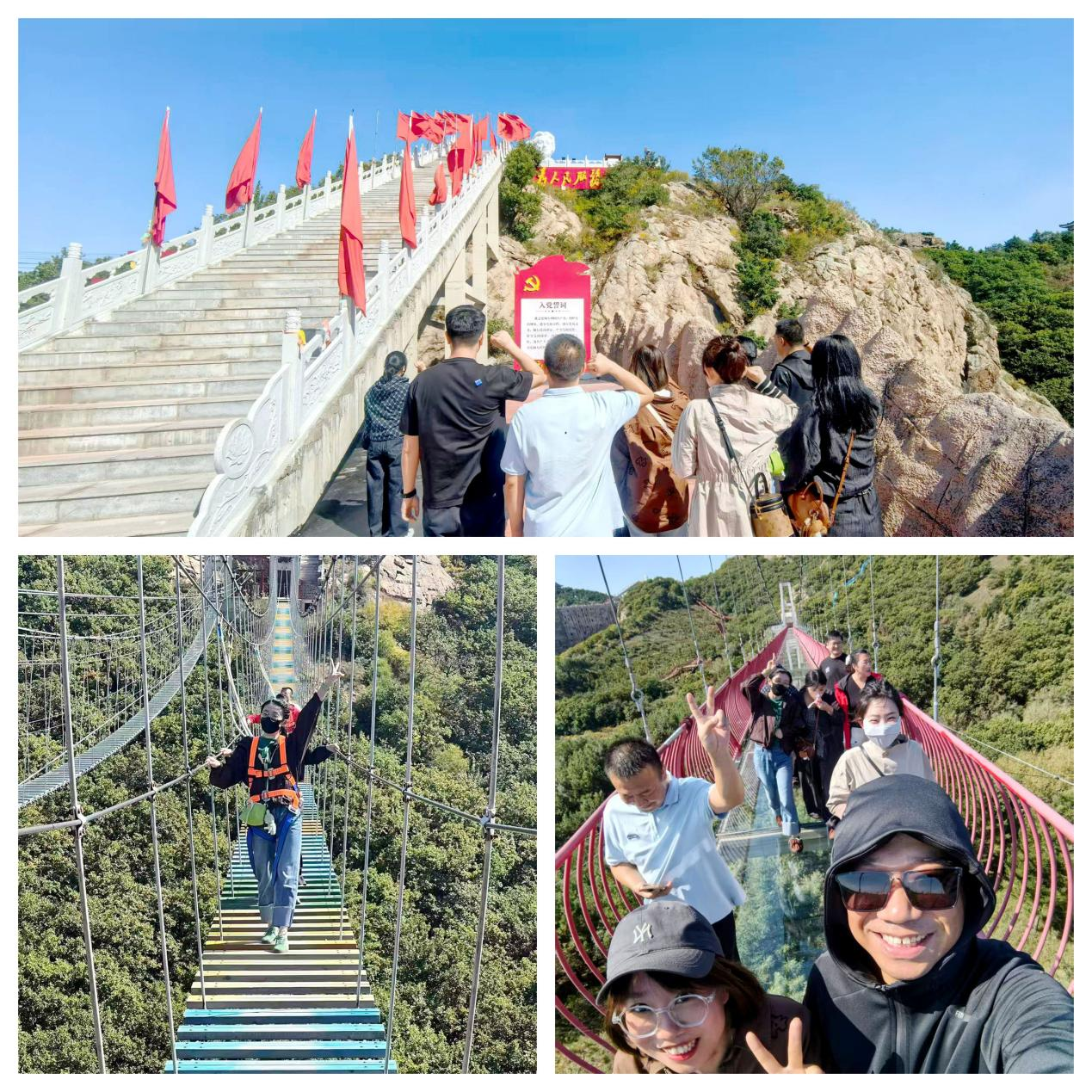 秋陽穿透薄霧,為大龍山的懸崖峭壁鍍上一層金芒。園區(qū)特別設計了“重走長征微步道”,職工們登上長長的石階后,沿著陡峭的崎嶇山路前行,將團隊協(xié)作與歷史情境深度融合。玻璃棧道上,望著腳下遠遠的樹尖,有了攜手攙扶的隊友,恐高的同事們,也紛紛登上棧道,在團隊的幫扶下,大家挑戰(zhàn)了自己,克服了恐懼。”大家?guī)е@份從云端汲取的力量,把“同心”刻進日常,把“敢闖”融進血脈。