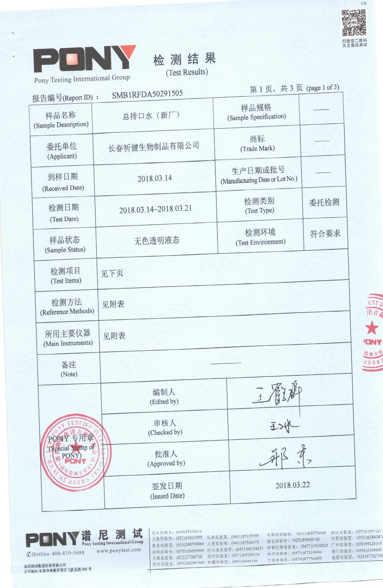 長春祈健生物2018年上半年噪聲檢測報告:上半年水質(zhì)檢測報告: